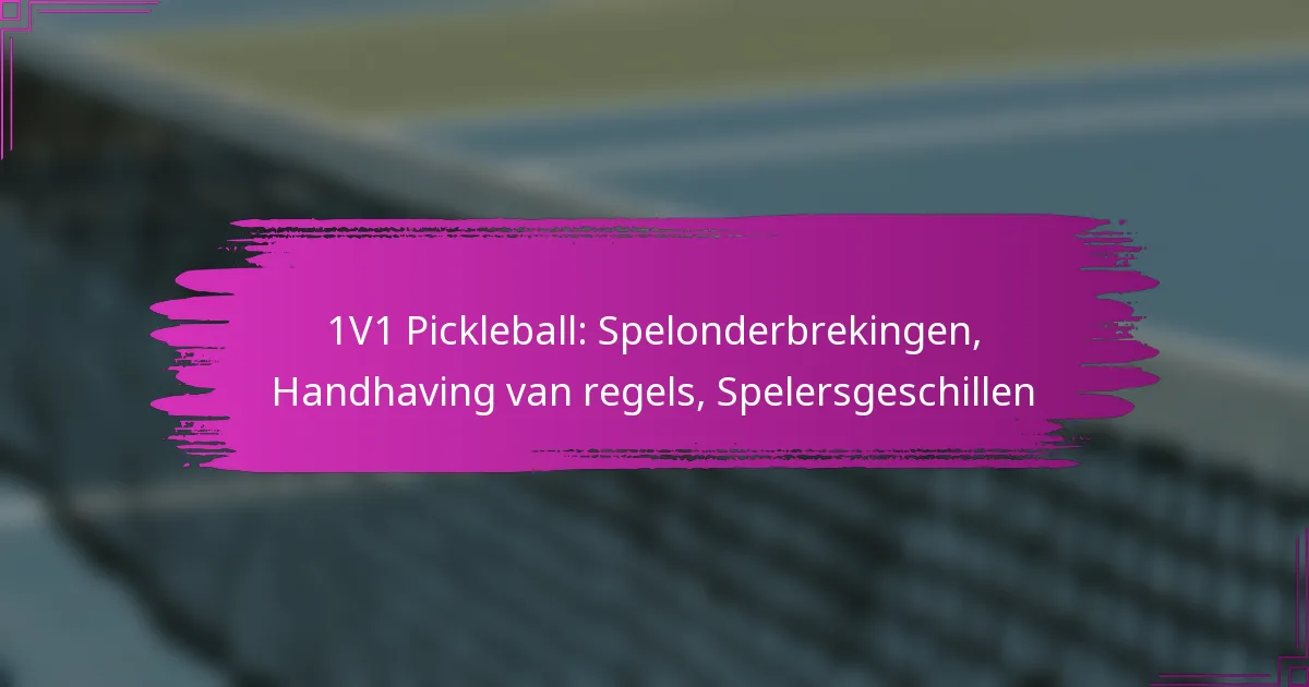 In 1v1 pickleball kunnen onderbrekingen van het spel ontstaan door verschillende factoren, zoals blessures, externe afleidingen en problemen met de uitrusting, waardoor het essentieel is voor spelers om deze pauzes effectief te beheren. Handhaving van de regels is afhankelijk van zelfbeoordeling en, wanneer mogelijk, scheidsrechters, wat vereist dat spelers goed op de hoogte zijn van de officiële regels om geschillen te kunnen afhandelen. Duidelijke communicatie en gestructureerde strategieën voor conflictoplossing zijn van vitaal belang voor het oplossen van meningsverschillen, wat een eerlijk en plezierig spel voor alle deelnemers bevordert.
